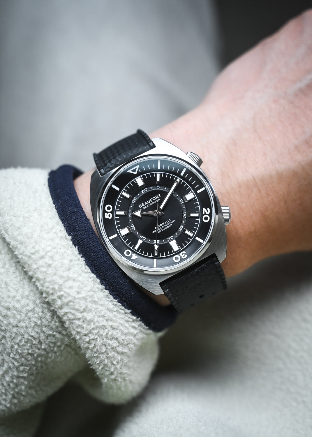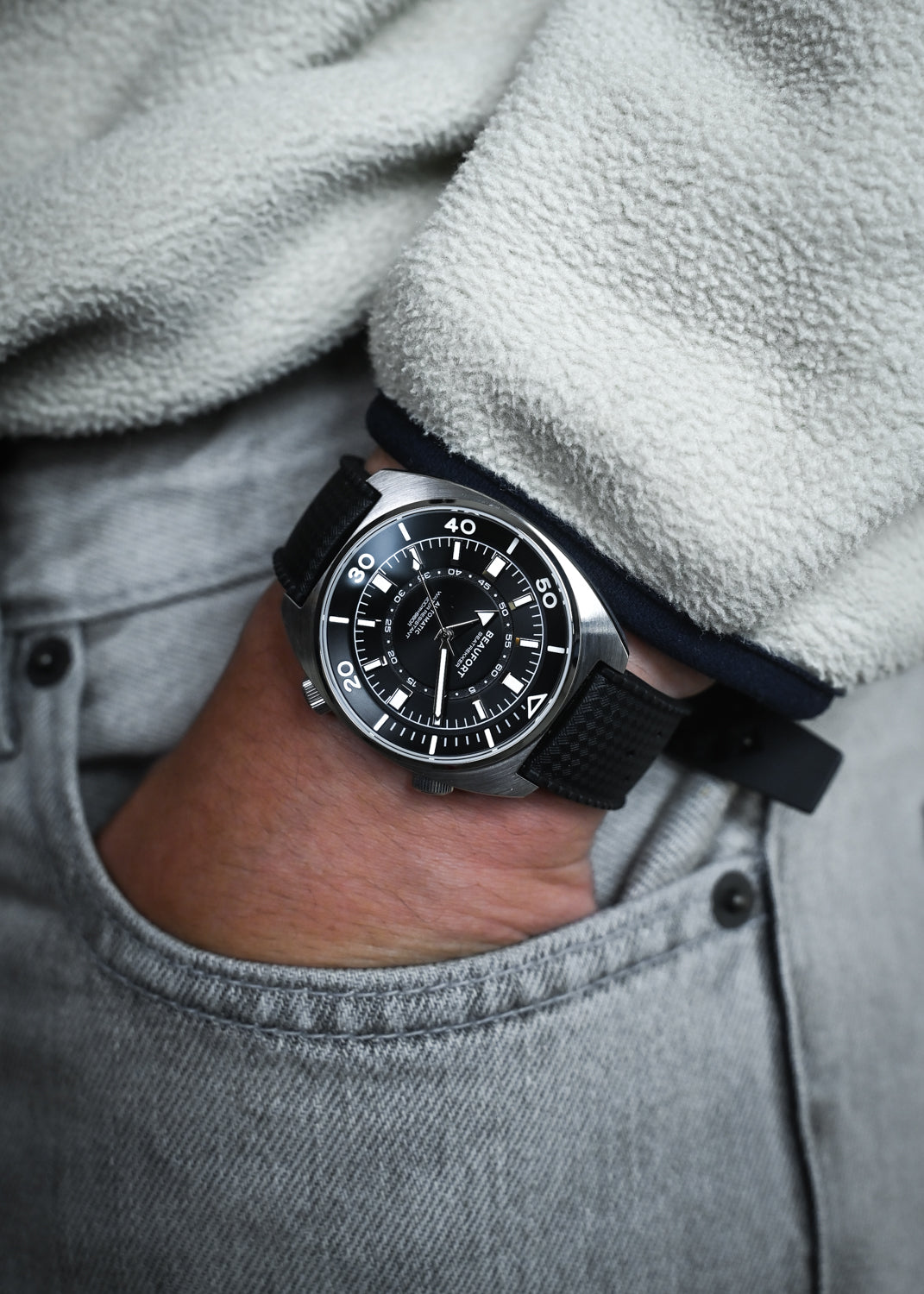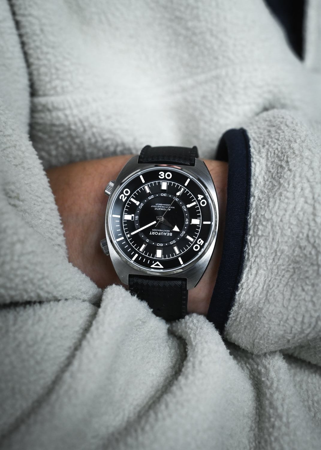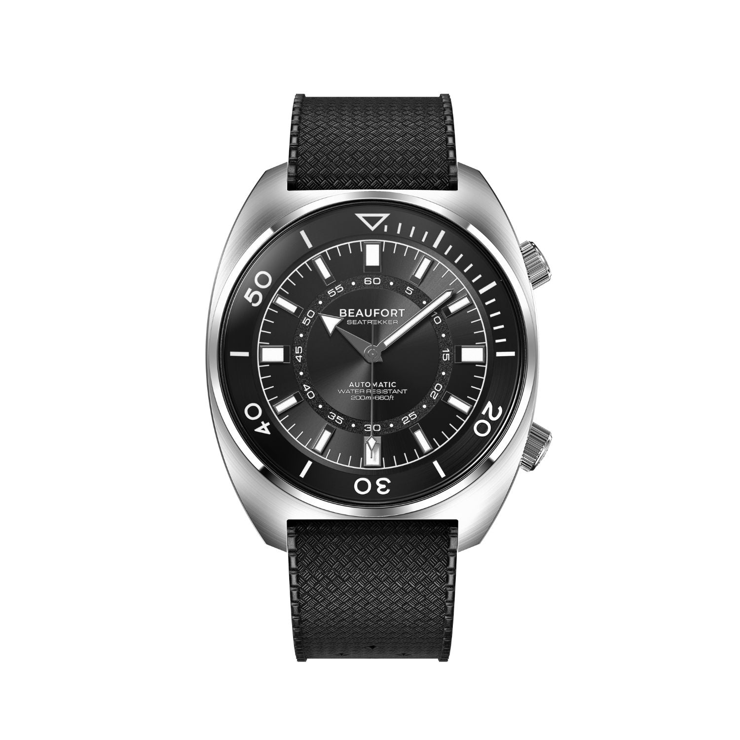 Inspired by the super compressor watches of the 1970s, the Seatrekker pays homage to this era with a dual crown case operating an internal bezel.