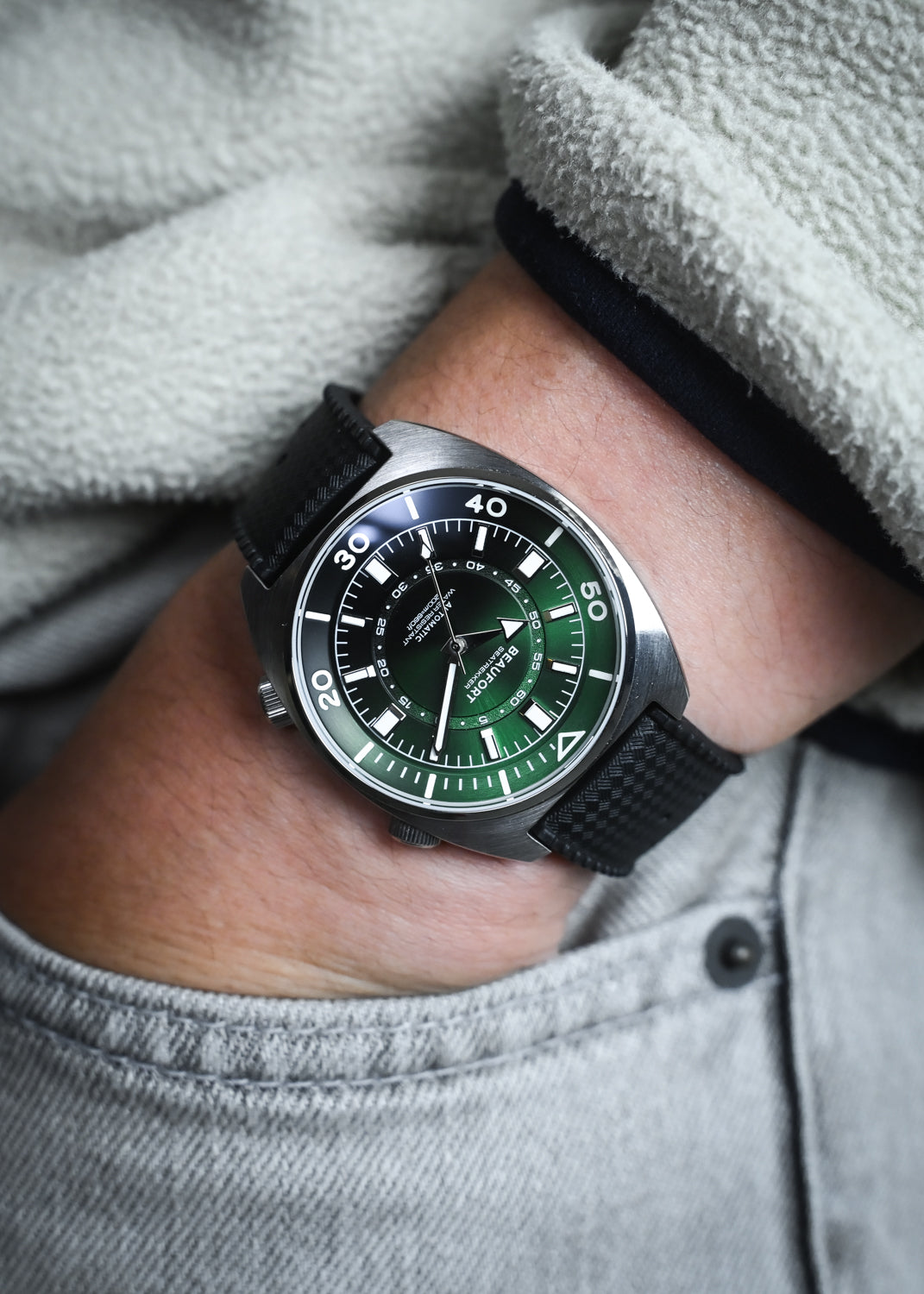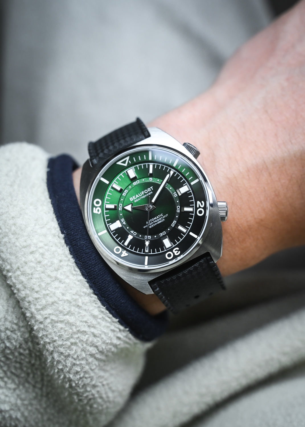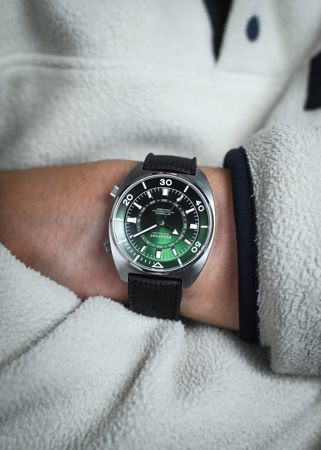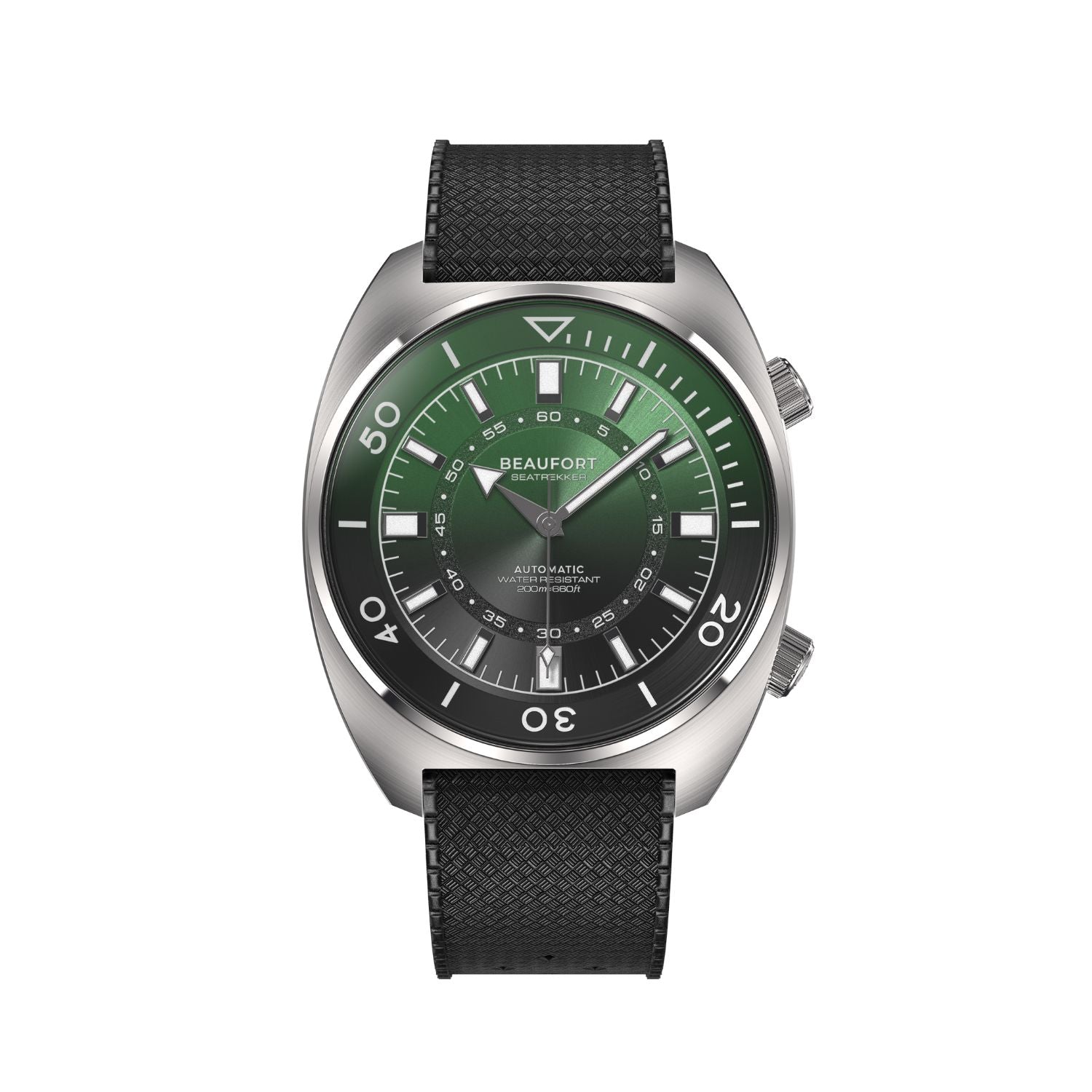 Inspired by the super compressor watches of the 1970s, the Seatrekker pays homage to this era with a dual crown case operating an internal bezel.