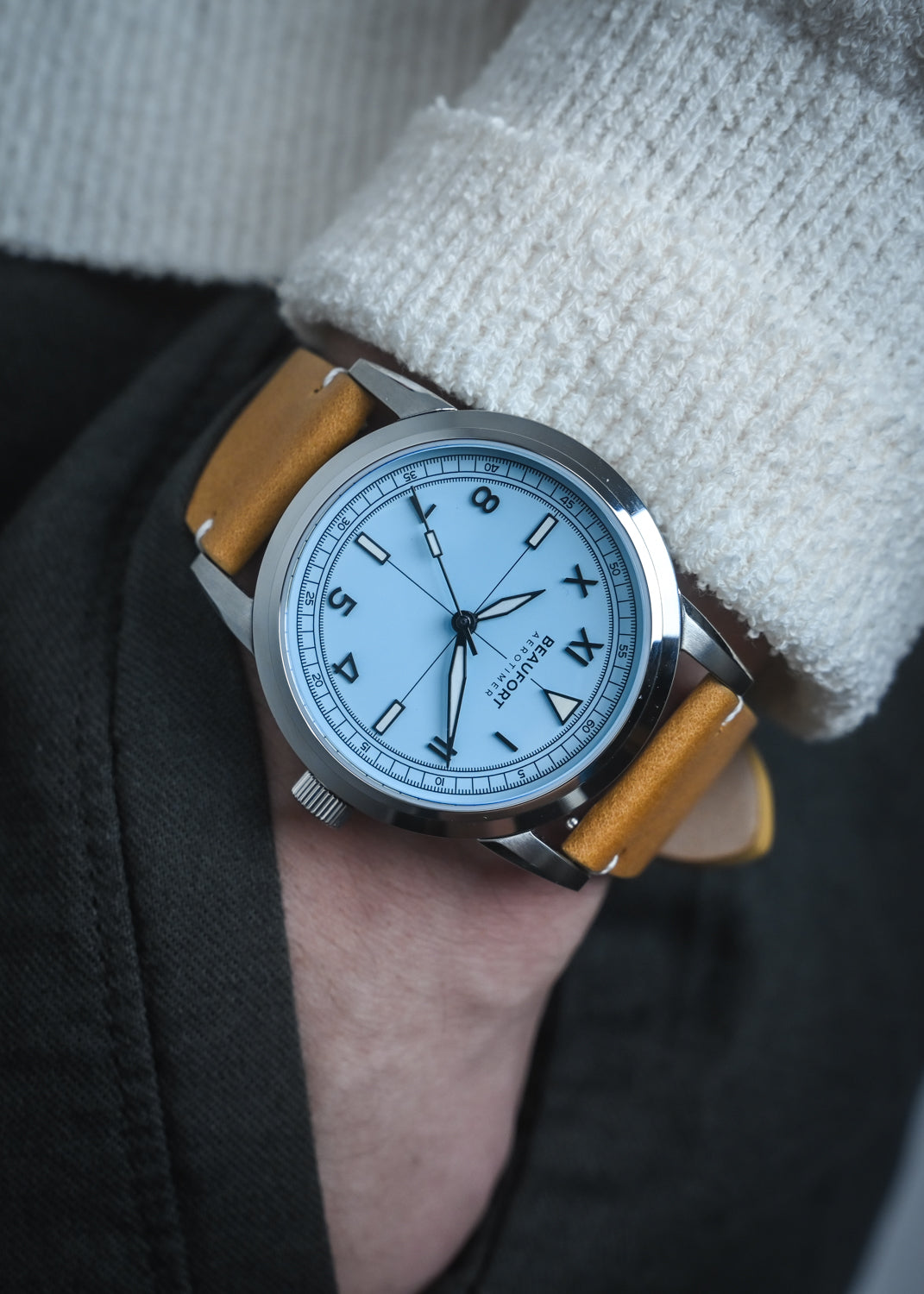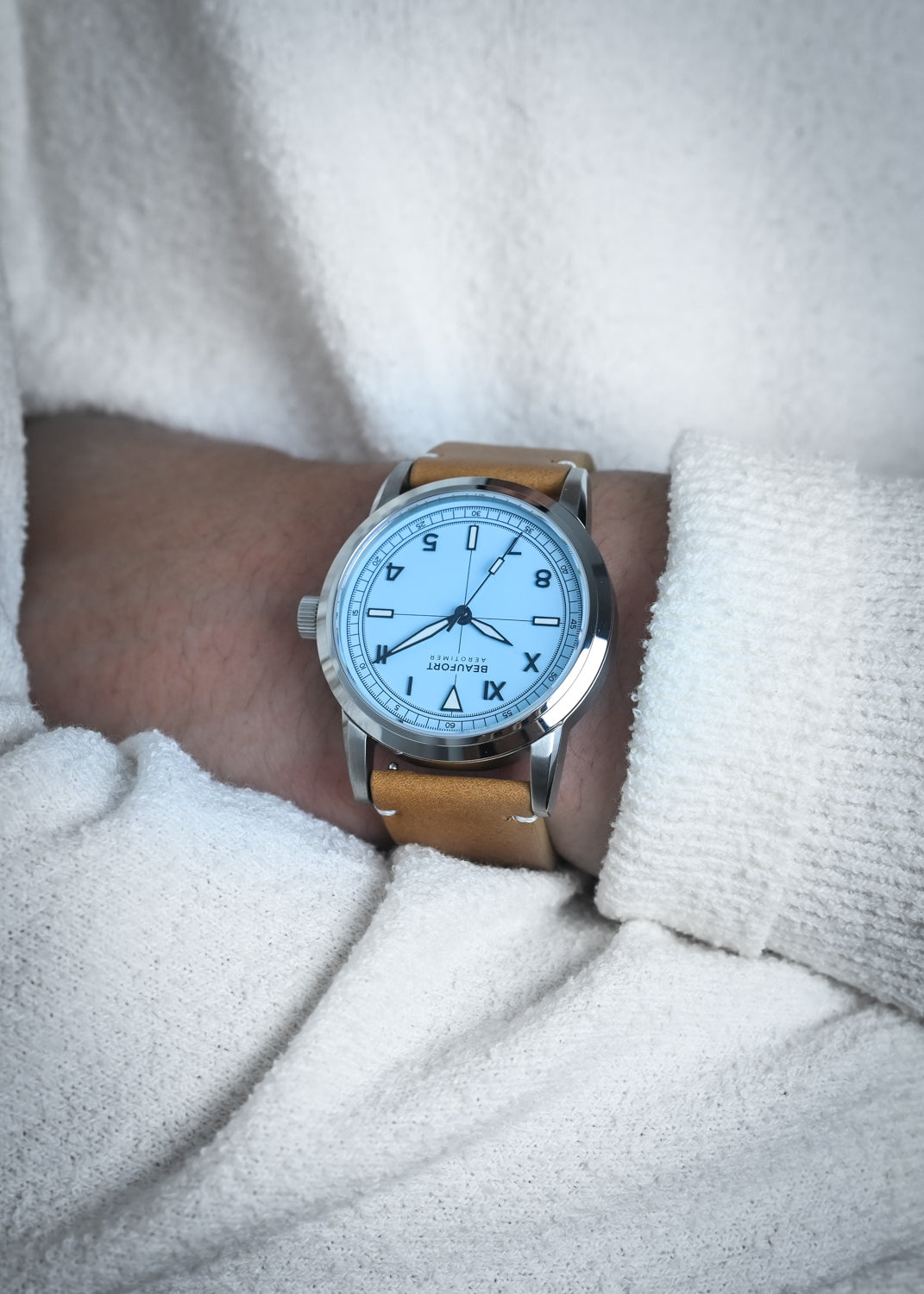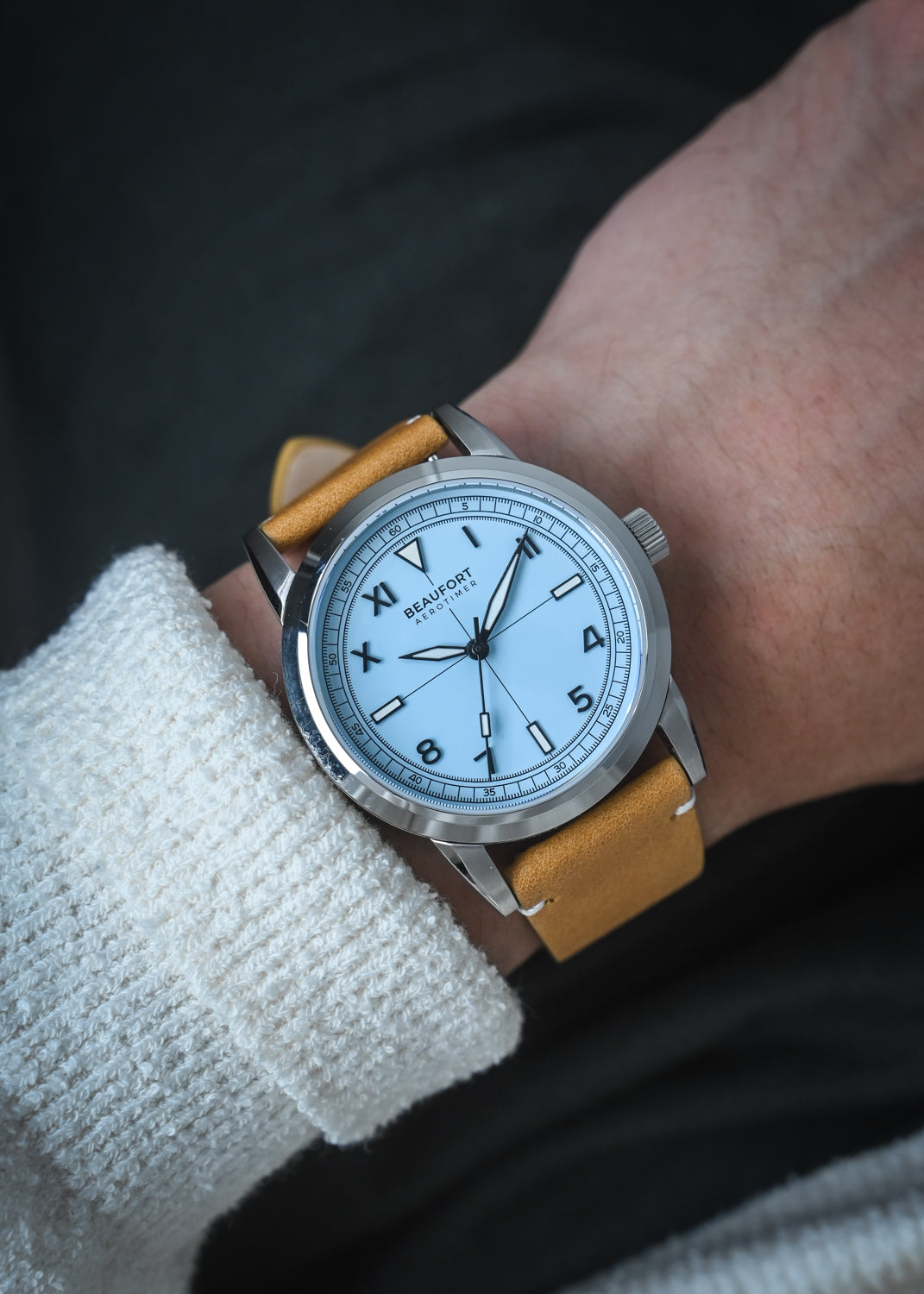The Aerotimer Mark II is updated with the date window removed (no ghost date) to bring a more symmetrical and balanced aesthetic to the dial face.