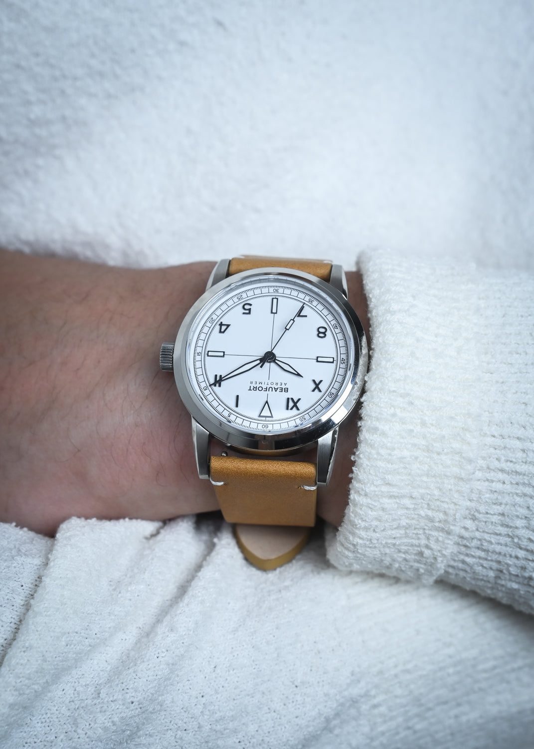 The Aerotimer Mark II is updated with the date window removed (no ghost date) to bring a more symmetrical and balanced aesthetic to the dial face.