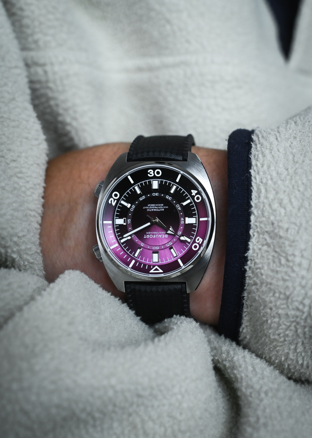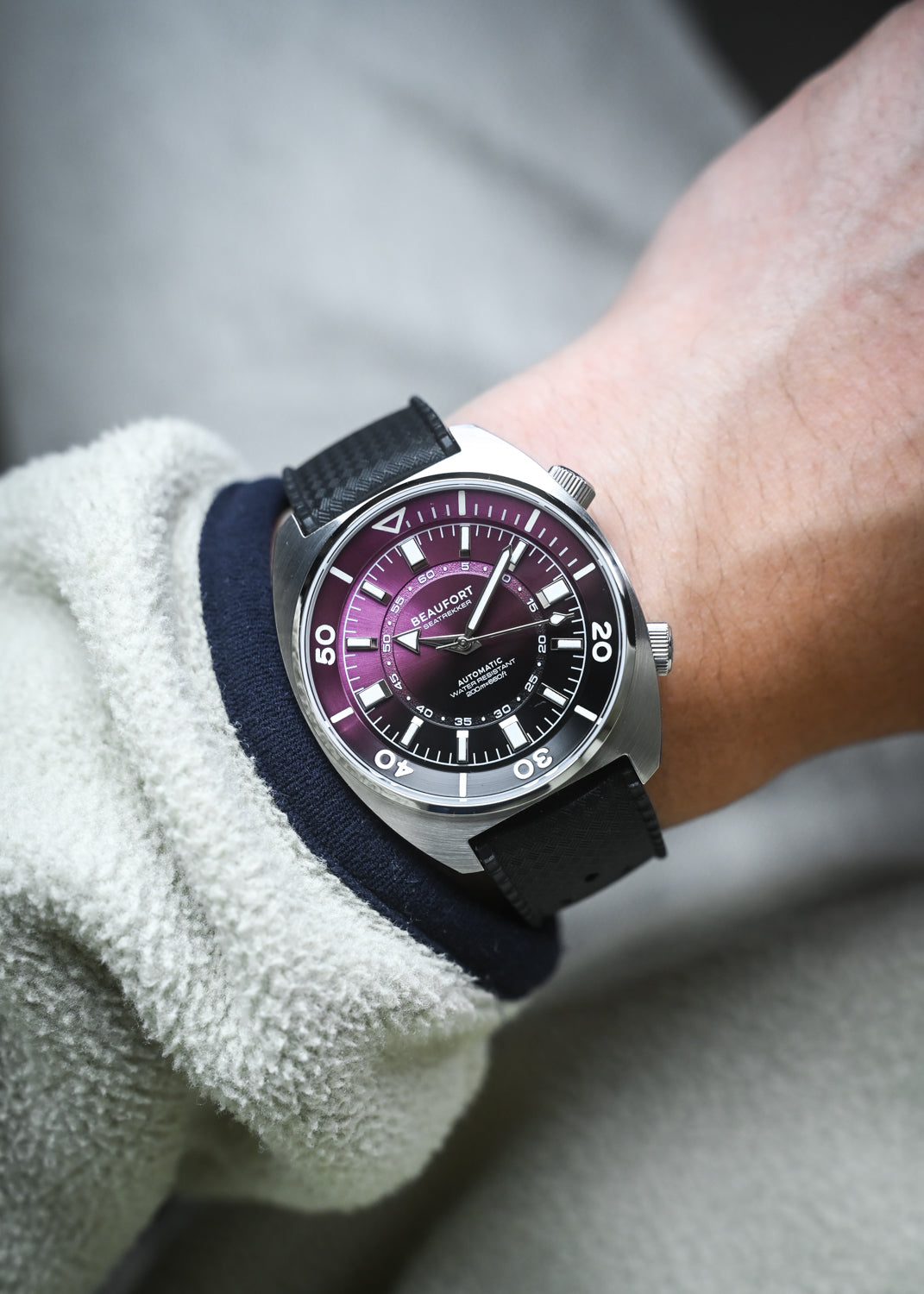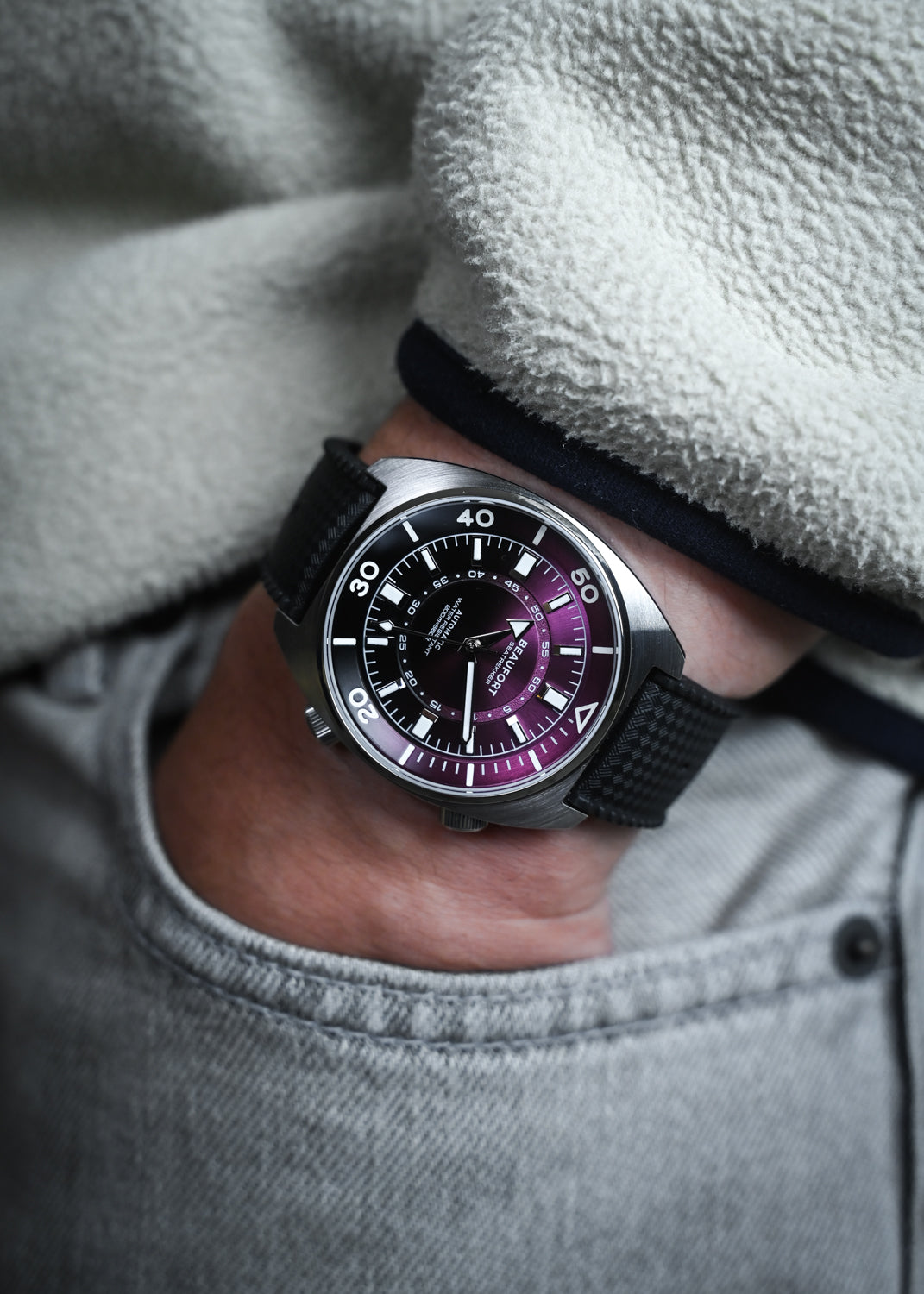 Inspired by the super compressor watches of the 1970s, the Seatrekker pays homage to this era with a dual crown case operating an internal bezel.