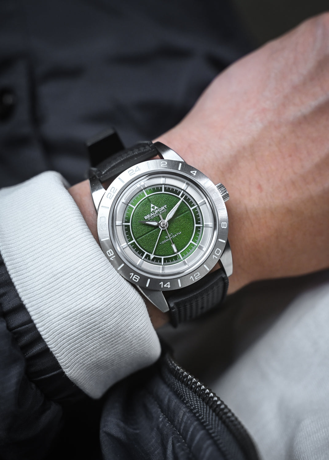 With a heavy focus on finishing and textures, the Fiordland GMT prioritises visual depth via layering the dial with multiple forms of finishing. Complemented by a finely brushed case and polished chamfered lug edges.