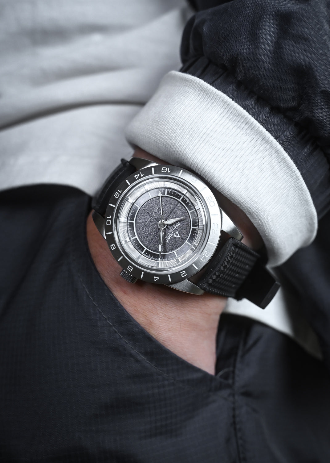 With a heavy focus on finishing and textures, the Fiordland GMT prioritises visual depth via layering the dial with multiple forms of finishing. Complemented by a finely brushed case and polished chamfered lug edges.